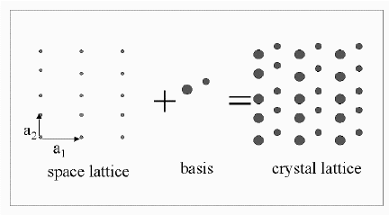 空间点阵:代表晶体中原子、原子团或分子分布规律(周期性)的几何点的集合。