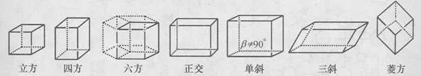 根据六个点数参数间的相互关系,可将全部空间点阵归属于7种类型,即7个晶系
