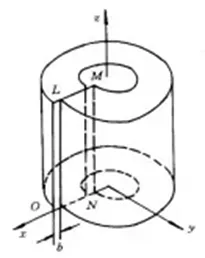 建立如图2所示的螺型位错力学模型。从该模型可知,形成螺位错时只有轴向位移,没有径向和切向位移。