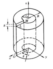 建立如图1所示的刃型位错力学模型。该模型中圆筒的轴线对应刃位错的位错线,圆筒的空心部分相当于位错的中心区。