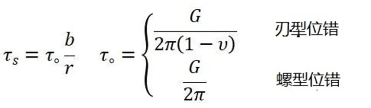 式中W为单位长度位错线的弹性应变能,G是剪切模量,b是伯氏矢量,α=1/4πlnR/r0 其中R是晶体的外径、r0是位错核心的半径,系数a由位错的类型、密度(R值)决定,其值的范围为0.5-1.0。