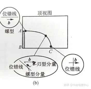 ■ A与C之间,位错线既不垂直也不平行于滑移矢量,每一小段位错线都可以分解为刃型和螺型两个分量。